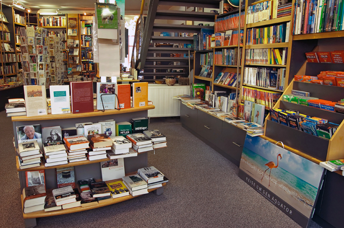 Ein Büchergeschäft im Zentrum der historischen Altstadt, inhabergeführt und unabhängig seit 1982, ein Ort der Kommunikation und des Handels mit dem, was uns Sprache erleben lässt, was uns den Horizont weitet, was uns vergnügt und unterhält, was uns das Leben erklärt.